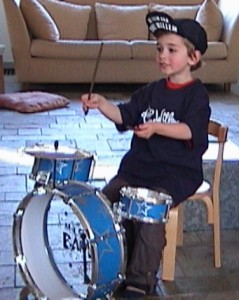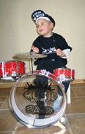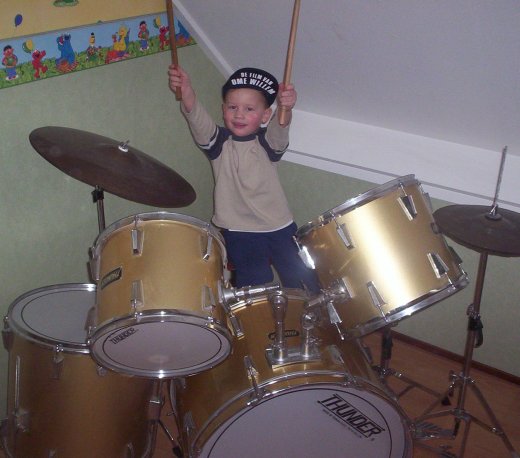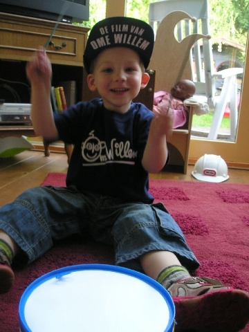 Die guitige rakker op de twee bovenstaande fotootjes is de winnaar van de 1e heuse Ome Willen contest. Hij heet Luuk Wilkeshuis en hij kan heel goed drummen.