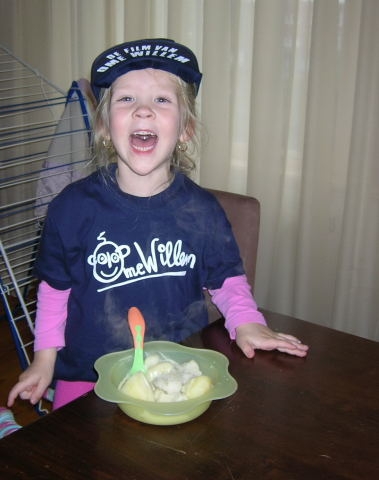 Kleine Rakker Chanel eet haar bloemkool met een papje!!!!!